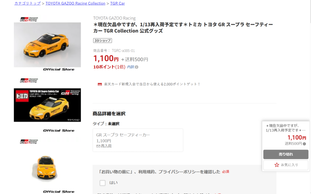 1月6日(13日再販)トミカ トヨタ GR スープラ セーフティーカー TGR Collection 公式グッズ